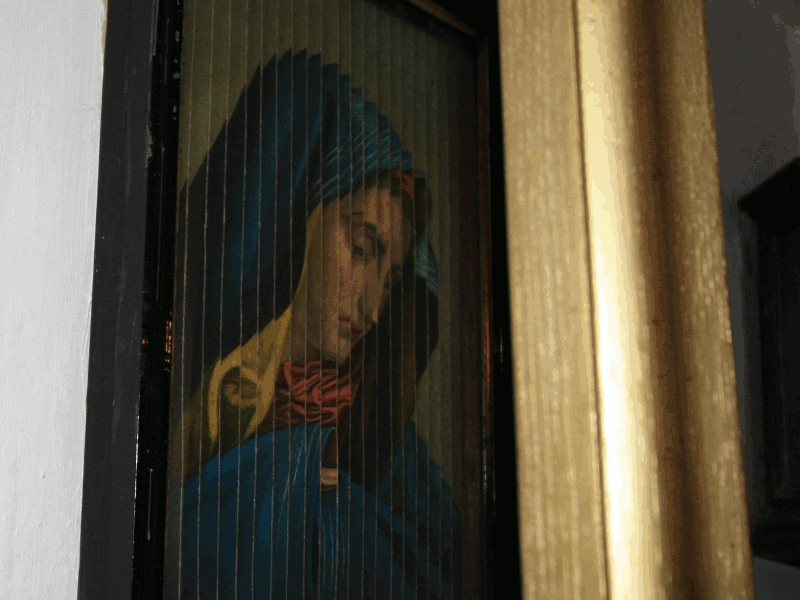 Im Freilichtmuseum Kommern hängt unscheinbar in einem der historischen Bauernhäuser ein Bild mit winkelabhängigen Ansichten, dass mit einer einfachen Technik erstellt wurde.