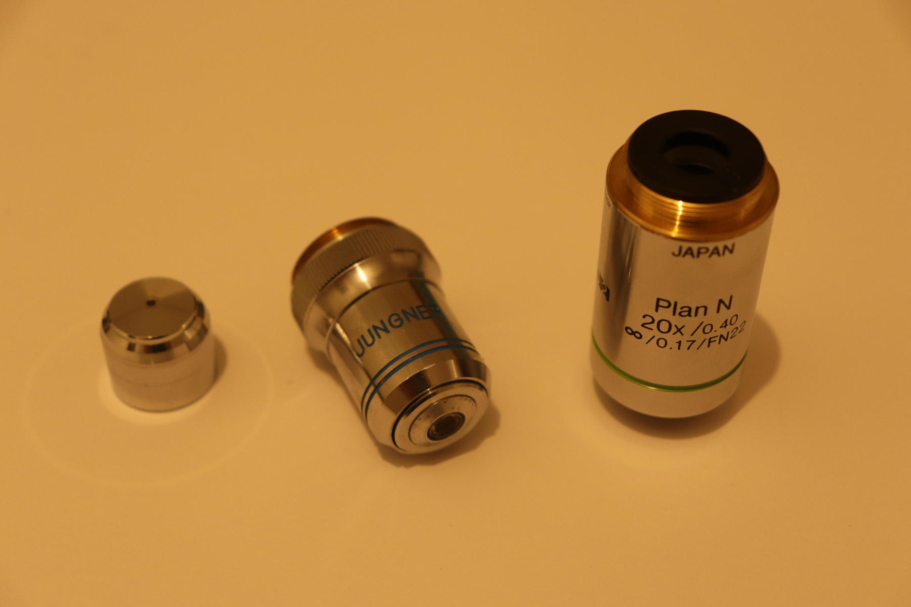 LeistungsmessgerätElektronisches Gerät, das über einen Messkopf, der in den Laser-Strahl gehalten wird, die Laser-Leistung (pro Quadratzentimeter) misst und anzeigt. Wird eine pin-Diode (siehe pin-Diode) zur Messung verwendet, ist es wichtig die korrekte Wellenlänge einzustellen.LichtwelleLotDas Lot bezeichnet in der Geometrie eine Gerade, die senkrecht auf einer anderen Gerade oder einer Ebene steht. Im holographischen Aufbau ist diese Ebene der Holographie-Tisch. Am Lot wird unter aderem der Brewster-Winkel (siehe Brewster-Winkel) gemessen.Master-HologrammHologramm, das als Vorlage zur Umkopie dient (siehe Umkopie). Bei der Aufnahme erzeugt es den Objektstrahl und projiziert ihnauf die zu belichtende Filmschicht.MikroskopobjektivEin Objektiv mit kurzer Brennweite, das entsprechend seiner Vergrößerung (x5, x10, x20) Licht fokussiert und für die Holographie zur Aufweitung des Laser-Strahls verwendet werden kann. Je höher die Vergrößerung, umso kleiner ist die Brennweite des Objektivs, und desto größer ist die Aufweitung des Strahls. Vergrößerungen über x40 lassen sich meist nur schwer durch das Pinhole (siehe Pinhole) fädeln.siehe Raumfilter