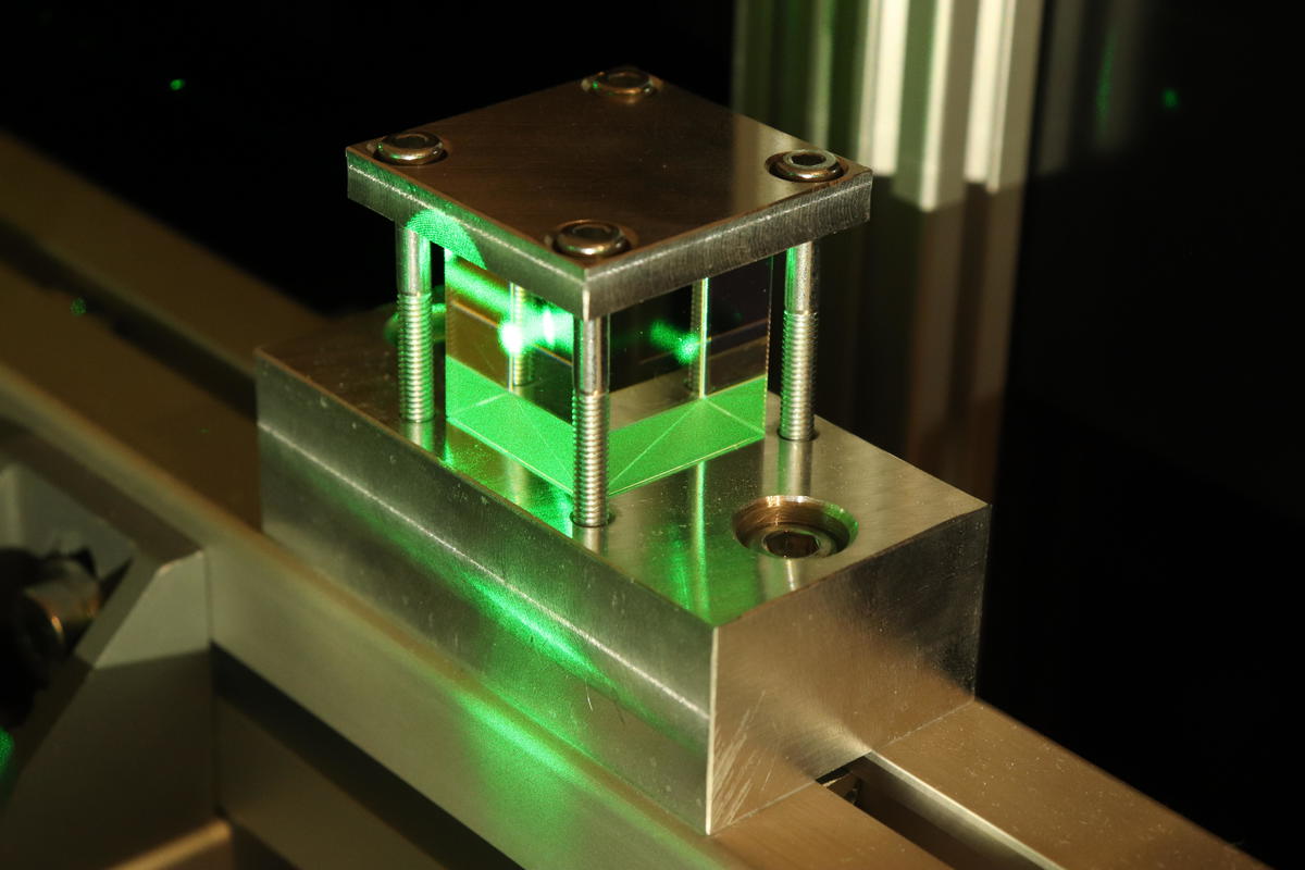 Single Frequencys-Polarisation/p-PolarisationBei p-polarisiertem Licht ("p" wie "parallel") ist das elektrische Feld der Lichtwelle (siehe Lichtwelle) parallel zur Einifallsebene polarisiert. S-Polarisiertes Licht ("s" wie "senkrecht") ist dagegen senkrecht zu dieser Ebene polarisiert. Die p-Polarisation wird beim Brewster-Winkel ausgenutzt (siehe Brewster-Winkel).StrahlteilerOptisches Bauteil zur Aufteilung eines einzelnen Lichtstrahls in zwei Teilstrahlen. Neben nicht-polarisiernden werden auch polarisiernde Strahlteiler verwendet, bei denen die austretenden Teilstrahlen eine zueinander senkrechte Polarisation besitzen. So kann unter anderem das Intensitätsverhältnis der beiden Teilstrahlen durch die Kombination mit einer λ/2-Platte beliebig angepasst werden. Allerdings muss der Referenzstrahl für den Brewster-Winkel eventuell mit einer zweiten λ/2-Platte wieder zurückgedreht werden.