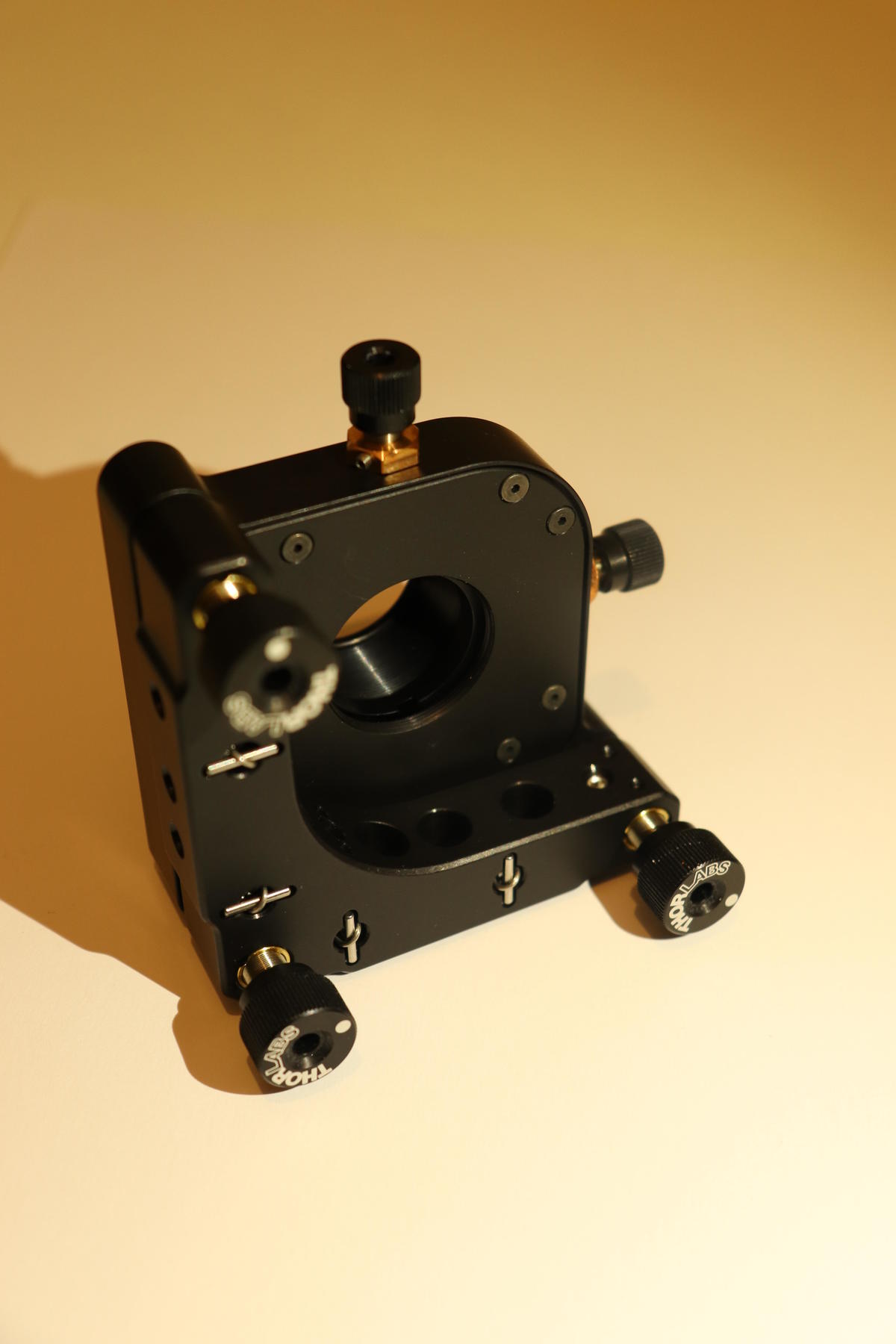 Der Brewster-Winkel ist der Winkel, unter dem das parallel zur Einfallsebene polarisierte Licht (siehe Polarisation) von der Filmplatte nicht reflektiert wird. In der Holographie wird der Brewster-Winkel ausgenutzt um Reflexionen innerhalb der Filmplatte zu vermeiden und damit die Qualität der Hologramme zu steigern. Der Brewster-Winkel beträgt ca. 33° zwischen der Filmplatte (Brechwert Floatglas = 1,5) und dem einfallenden Referenzstrahl, bzw. 57° zum Lot (siehe Lot).formel atand(1,5/1) DiodeDrehhalterMontierung, in der sich eine optische Komponente (z.B. λ/2-Platte) zur Feinjustage um 360° um die optische Achse drehen lässt.